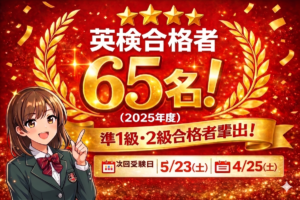🎉 英検 年間合格実績のお知らせ 中谷塾では、2025年度の英検において合計65名の合格者を輩出しました✨ 日々の授業・対策の成果として、多くの生徒が結果を出してくれました👏 📊 合格実績まとめ(2025年度) 級 大久 […]